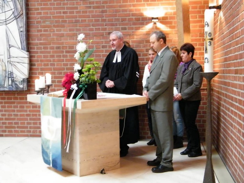 Idén ősszel egyházközségünk meghívást kapott a Rheinbachi Evangélikus Egyházközségtől, hogy újból látogassuk meg gyülekezetüket egy 16 főből álló delegációval. Örömmel készültünk az útra, hisz ez már a sokadik látogatásunk német testvéreinknél, ami azt is jelzi, hogy együttgondolkodásunk, partnerségünk tovább mélyülhet. Október 10-én vágtunk neki a nagy útnak jó kedvvel, derűvel és várakozással. Fontos, hogy kis csapatunkból 11 fő még soha nem járt testvérgyülekezetünknél. Közös találkozásaink egyik fő szempontja az, hogy minél többen megismerkedjenek a másik gyülekezet életével. Így a kalocsai reformátusok közül már több mint harmincan tudják, hogy miként is néz ki a Rheinbachi Egyház, hol és milyen körülmények között folyik ott a gyülekezeti munka. Természetesen nagy szeretettel fogadtak bennünket a Kölni repülőtéren, ahonnan utunk egyenesen a vendéglátó családokhoz vezetett. Ilyenkor persze mindig megmutatják vendéglátóink a közvetlen és közvetett környezetüket is, azaz volt turista program is. Pénteken megmutatták delegációnknak városukat, délután pedig Bonn-ba, a régi fővárosba kalauzoltak el bennünket. Ezen a napon én nem tartottam a kirándulókkal, mert egy nagyon fontos meghívásnak tettem eleget.