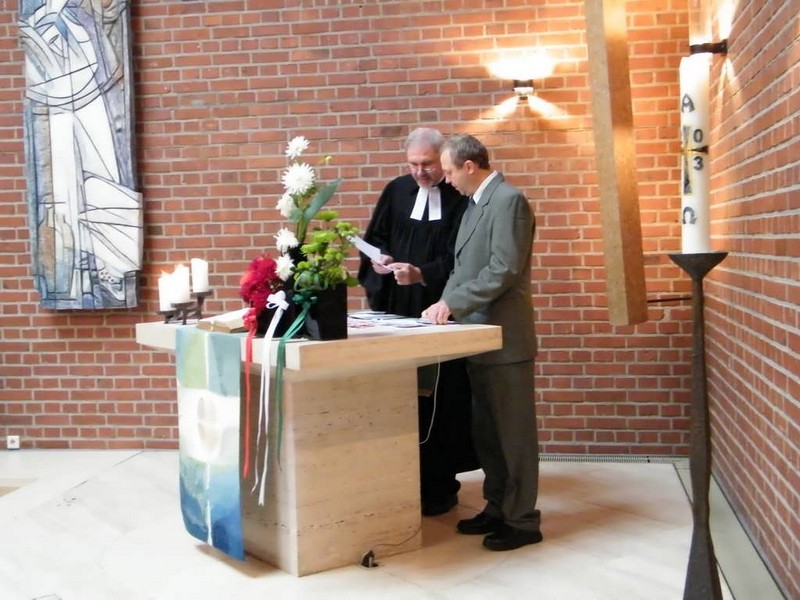 Idén ősszel egyházközségünk meghívást kapott a Rheinbachi Evangélikus Egyházközségtől, hogy újból látogassuk meg gyülekezetüket egy 16 főből álló delegációval. Örömmel készültünk az útra, hisz ez már a sokadik látogatásunk német testvéreinknél, ami azt is jelzi, hogy együttgondolkodásunk, partnerségünk tovább mélyülhet. Október 10-én vágtunk neki a nagy útnak jó kedvvel, derűvel és várakozással. Fontos, hogy kis csapatunkból 11 fő még soha nem járt testvérgyülekezetünknél. Közös találkozásaink egyik fő szempontja az, hogy minél többen megismerkedjenek a másik gyülekezet életével. Így a kalocsai reformátusok közül már több mint harmincan tudják, hogy miként is néz ki a Rheinbachi Egyház, hol és milyen körülmények között folyik ott a gyülekezeti munka. Természetesen nagy szeretettel fogadtak bennünket a Kölni repülőtéren, ahonnan utunk egyenesen a vendéglátó családokhoz vezetett. Ilyenkor persze mindig megmutatják vendéglátóink a közvetlen és közvetett környezetüket is, azaz volt turista program is. Pénteken megmutatták delegációnknak városukat, délután pedig Bonn-ba, a régi fővárosba kalauzoltak el bennünket. Ezen a napon én nem tartottam a kirándulókkal, mert egy nagyon fontos meghívásnak tettem eleget.